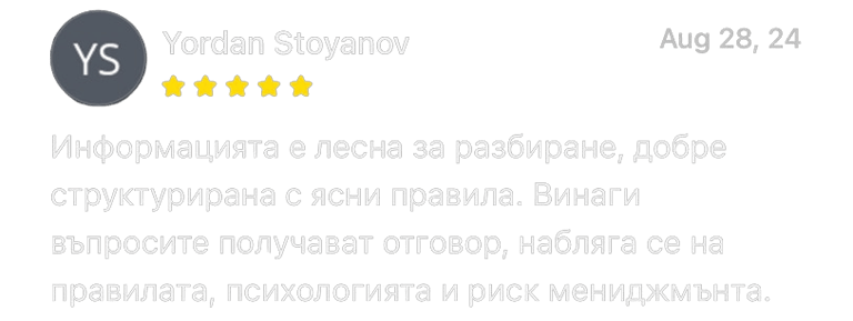 Залагаме на прозрачност, професионално обучение и индивидуален подход, така че всеки член да получи необходимите инструменти и знания.